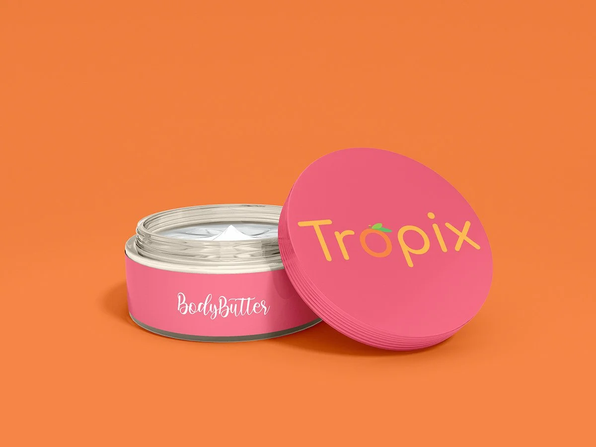 I was asked to develop a demo logo and mockups for three cosmetic products for the fictional brand Tropix. Using Adobe Photoshop, I applied the logo across sunscreen, body butter, and skincare jar mockups, bringing the brand to life with vibrant colors and clean typography. The concept required thoughtful brand identity development and attention to product-market alignment.